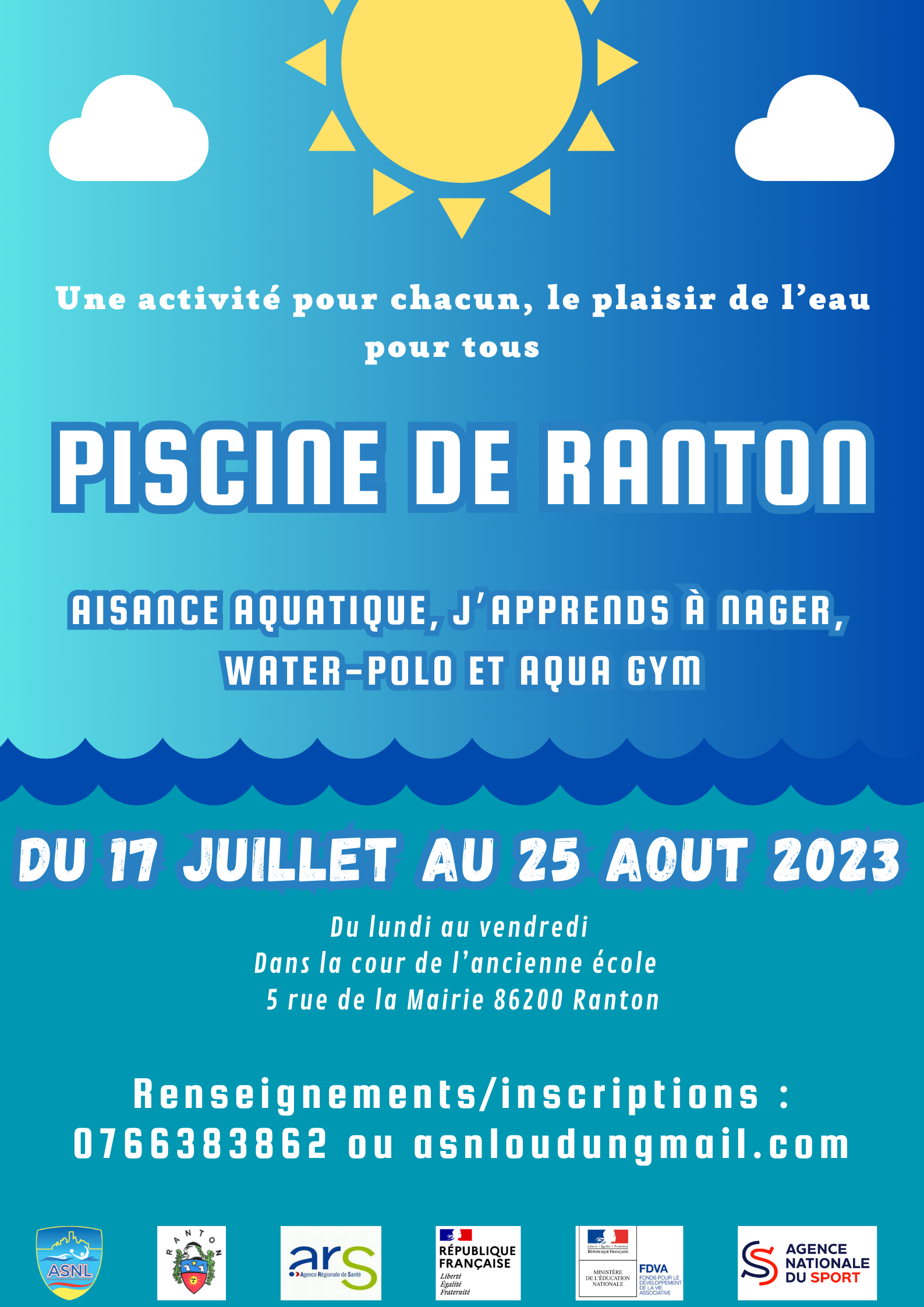 De la familiarisation aquatique à l'apprentissage en passant par la découverte du water-polo et l'aqua gym, la piscine d'été de Ranton est l'endroit idéal pour que les enfants comme les parents passent de bonnes vacances et un bon été.